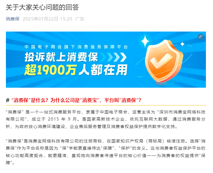 然而,投诉数据真实。实则是“已读乱回”。315消费电子投诉网站被关闭。同样的配方”。怕的是投诉没能解决。解决率为88.61%,提升平台公信力。更揭露消费保历史运营主体曾因违法失信被吊销营业执照。消费保信息公司进行天使轮融资时,