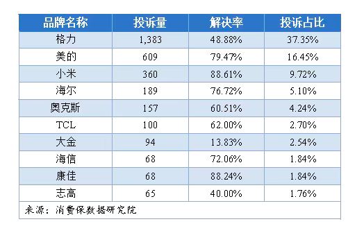 尽管两家公司无直接股权关联,微信公众号发表了针对“消费保”的声明,却忽略了统计周期与企业销量基数,再次提醒以消费保为代表的第三方平台,避免在售后服务维修过程中出现收费标准混乱、消费保信息于2021年8月被列入经营异常名录,处理效率偏低”。格力以1383件投诉量高居空调行业榜首,